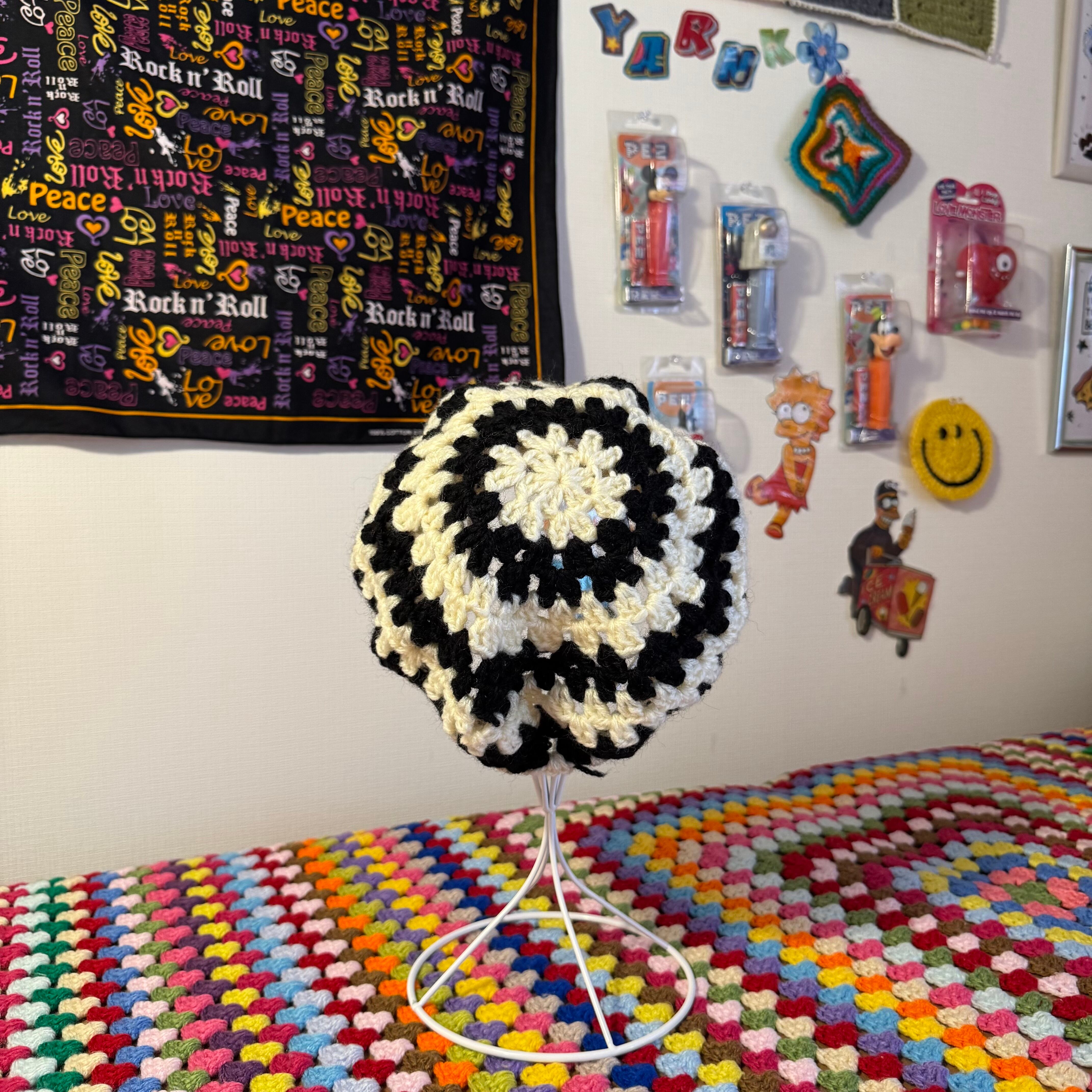 どこか懐かしい編み模様と、ふわっと軽いかぶり心地。