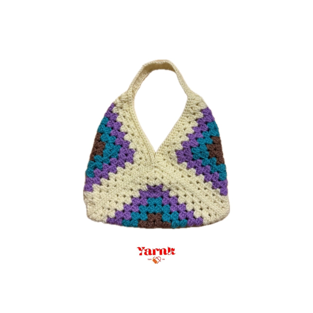 カラフルなグラニースクエアをぎゅっとつなげた、