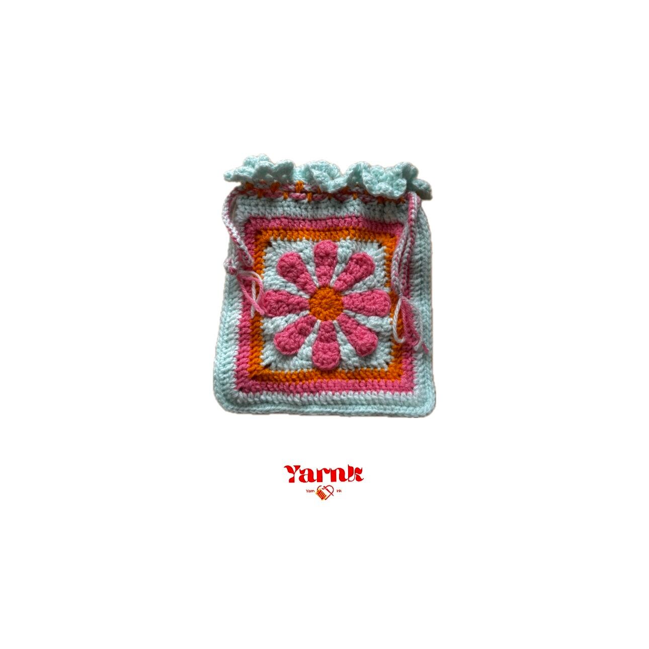 Yarnk特有のカラフルな配色とお花モチーフがちょこんと咲いたキャンディーみたいな巾着バッグ♡