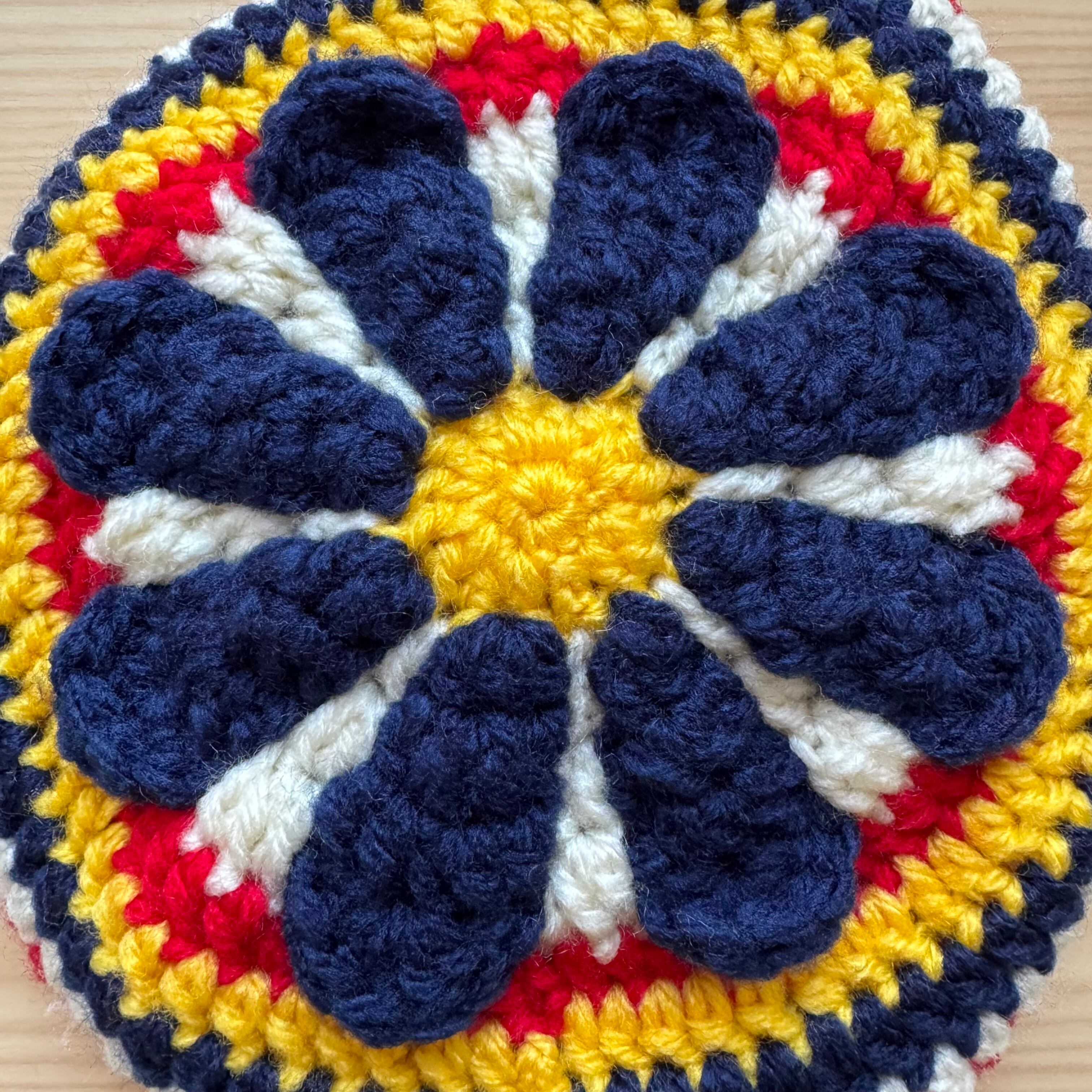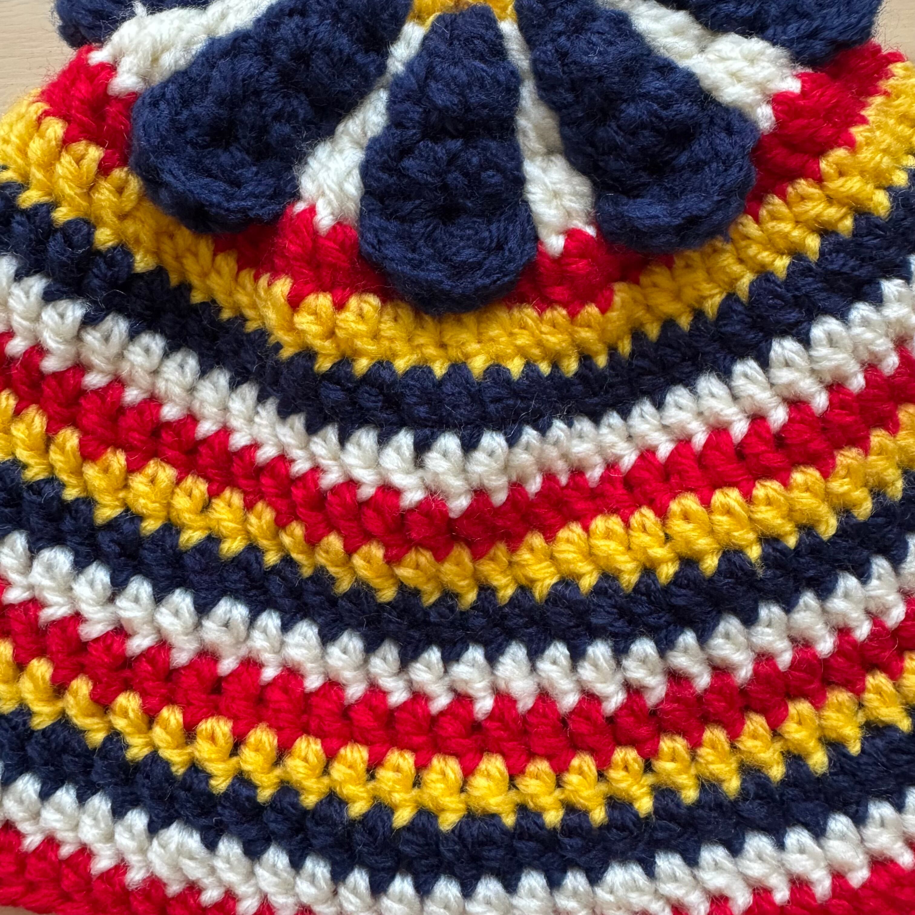 ころんとしたシルエットに、手編みならではの優しい風合い。
