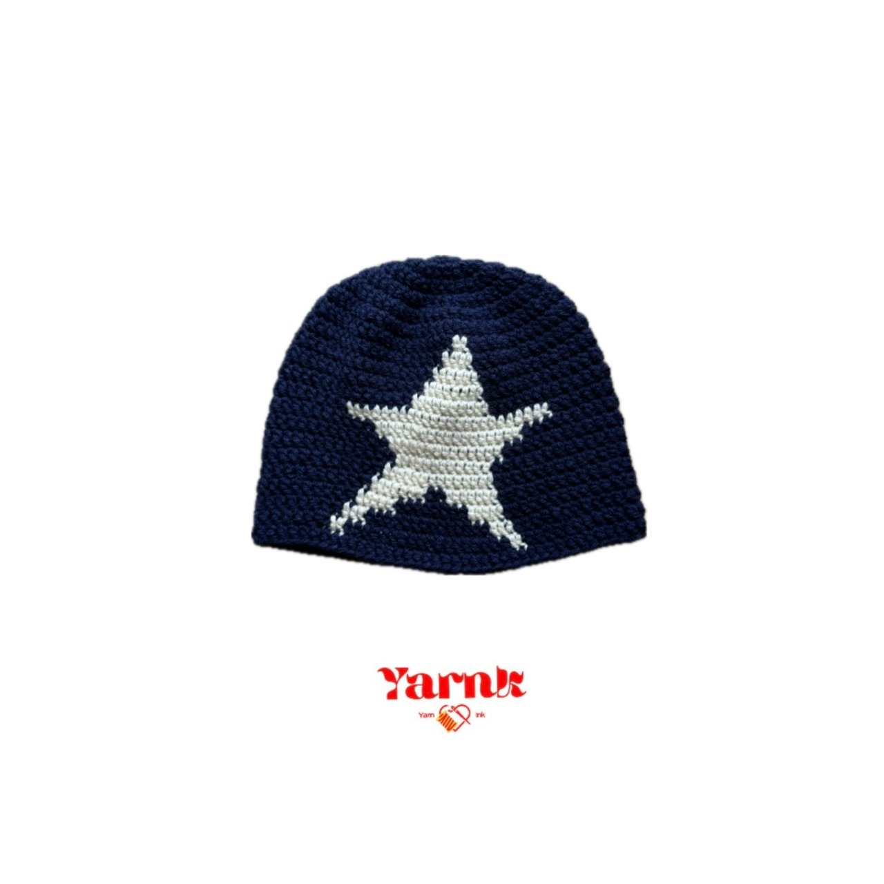ネイビーベースに、アイボリーの星をメインに編み込んだ1点☆