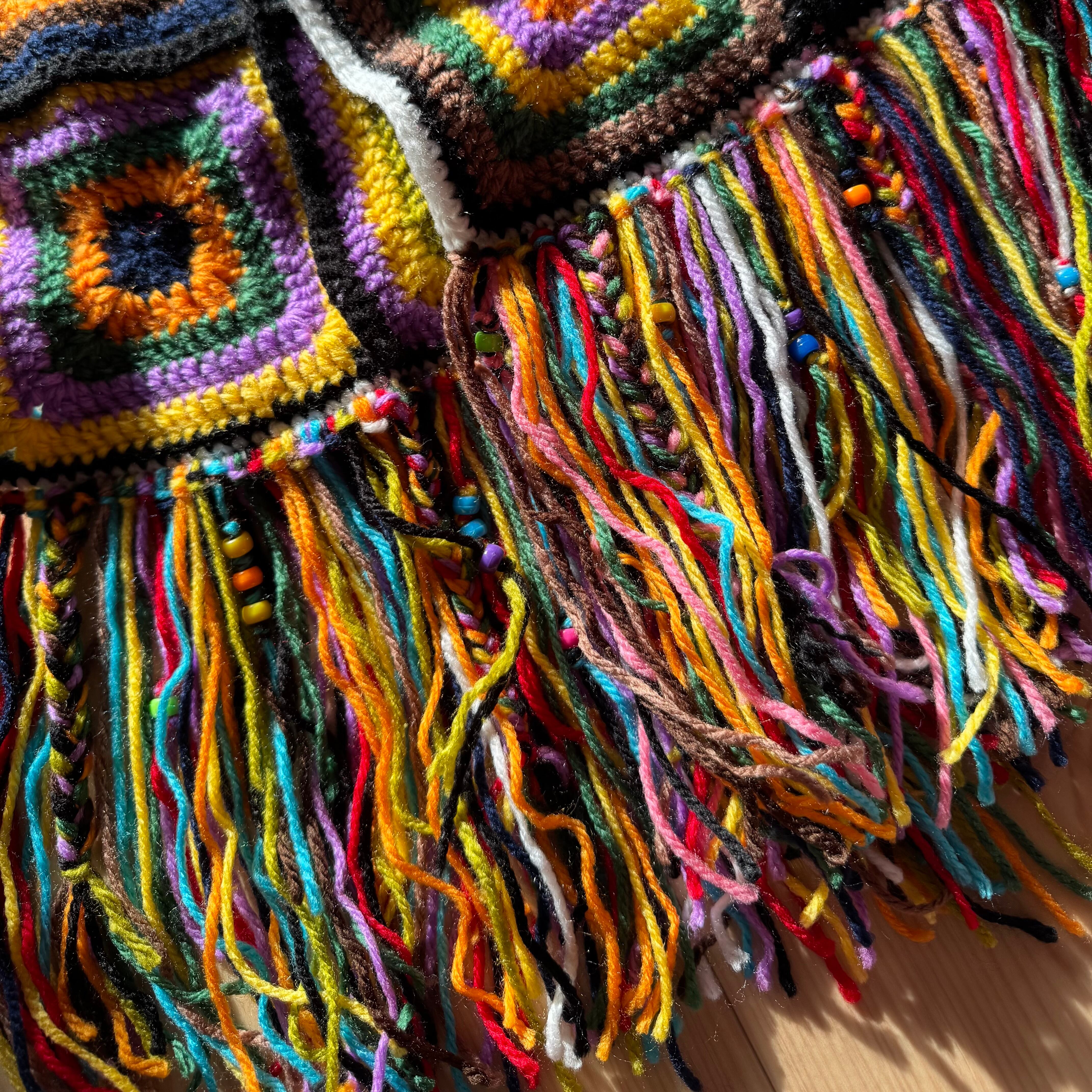 今回も裏表異なるデザインになってるのと、めちゃくちゃテンション上がる配色の長めフリンジをたっぷりつけてます!