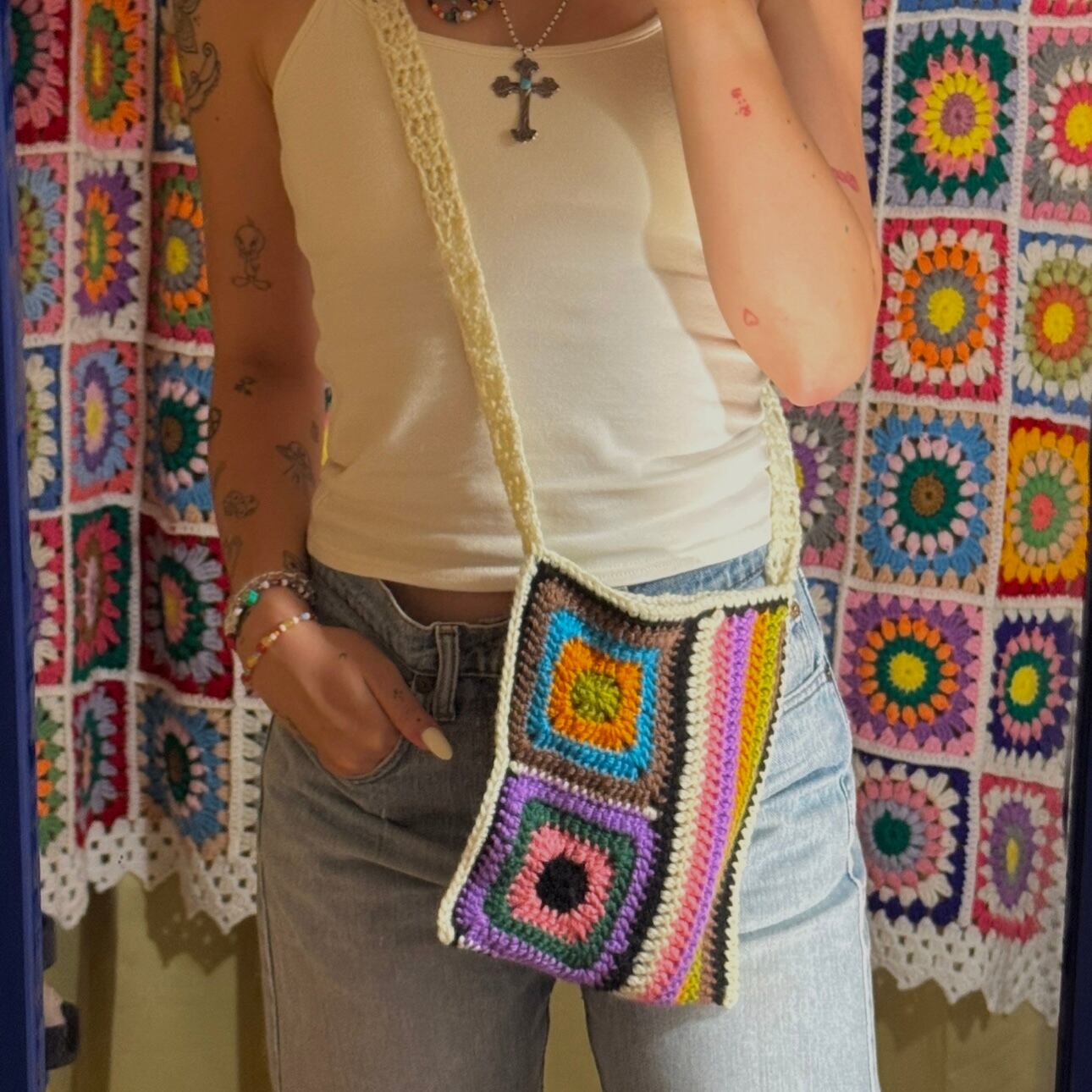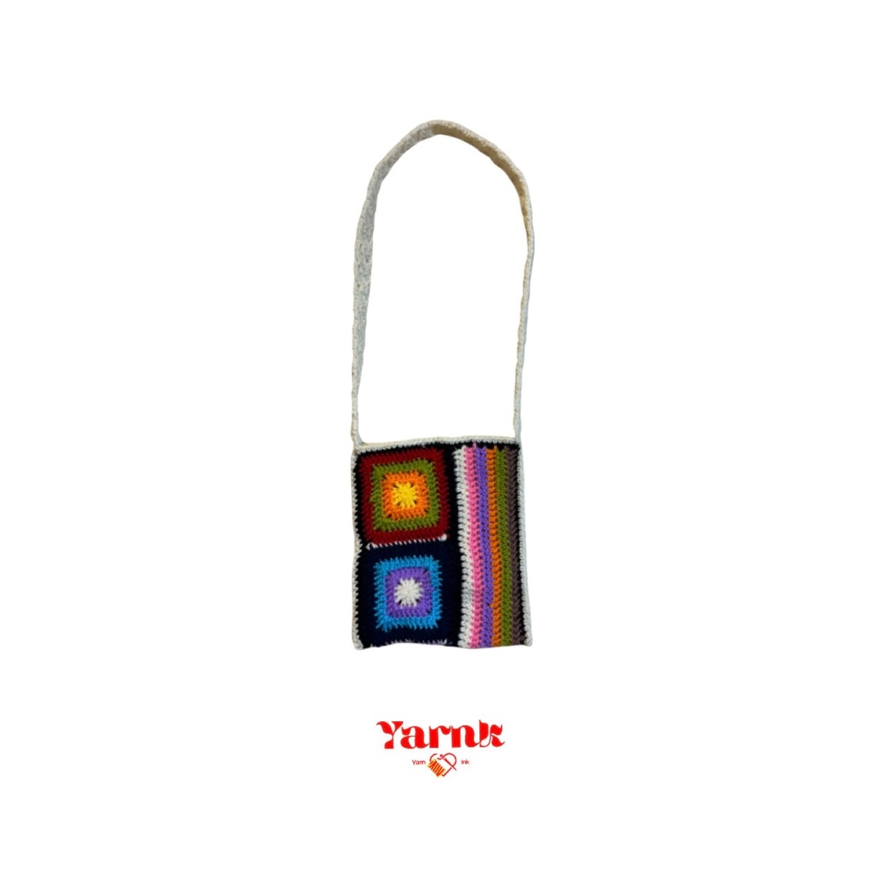 Colorful square motifを縦に繋ぎ合わせてサコッシュ仕上げました★