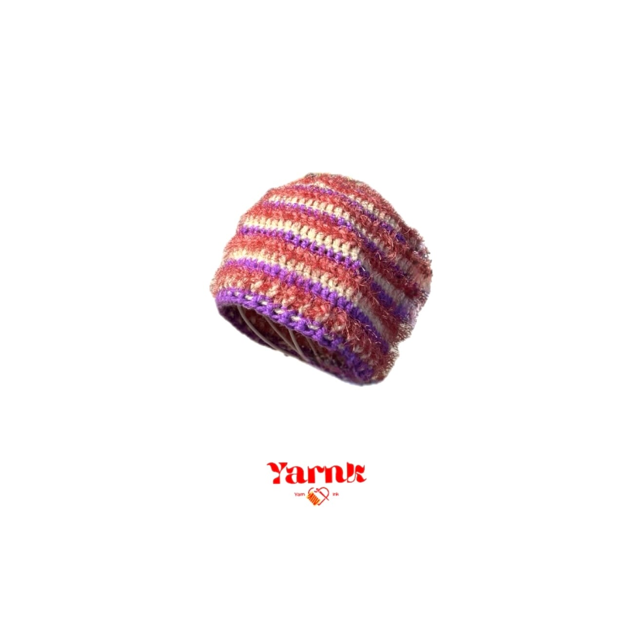 軽くてあたたかく、毛糸のもけもけが頭をやさしく包みます。