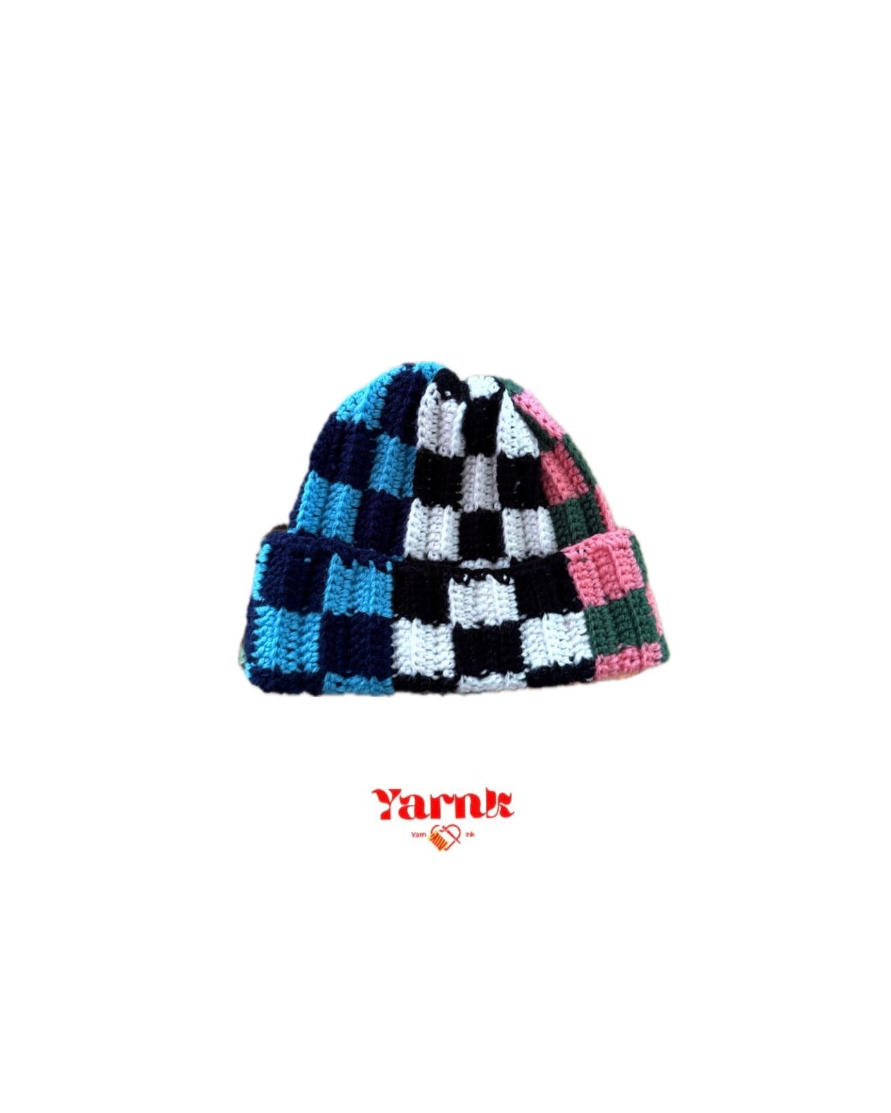“3つのチェッカーがひとつに踊る、Yarnkならではのビーニー。”