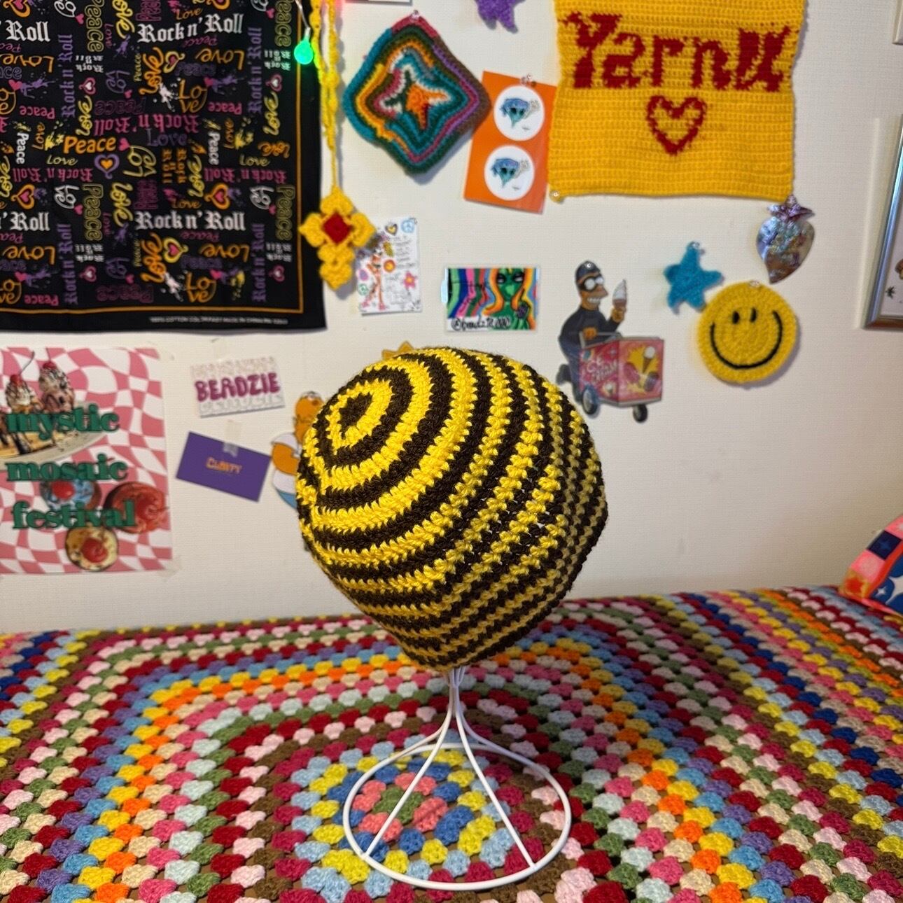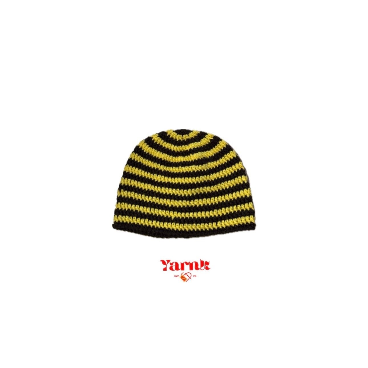 シンプルなボーダーがコーデに馴染む、ユニセックスのかぎ針ビーニー。