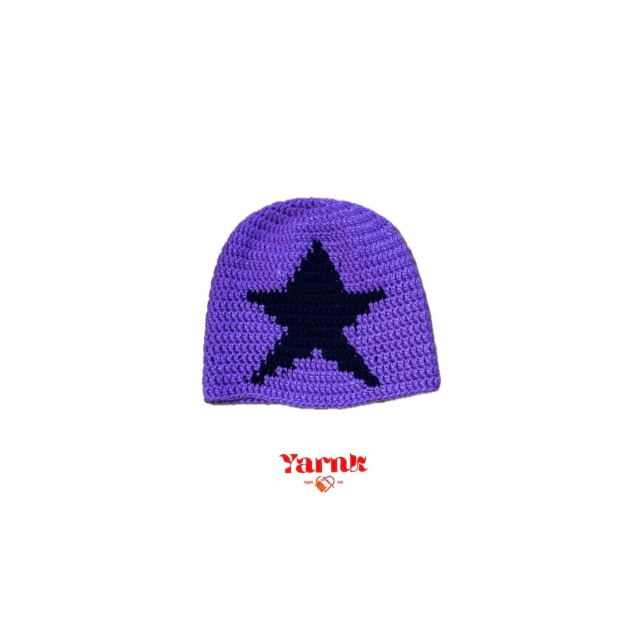 パープルベースに、ネイビーの星をメインに編み込んだ1点☆