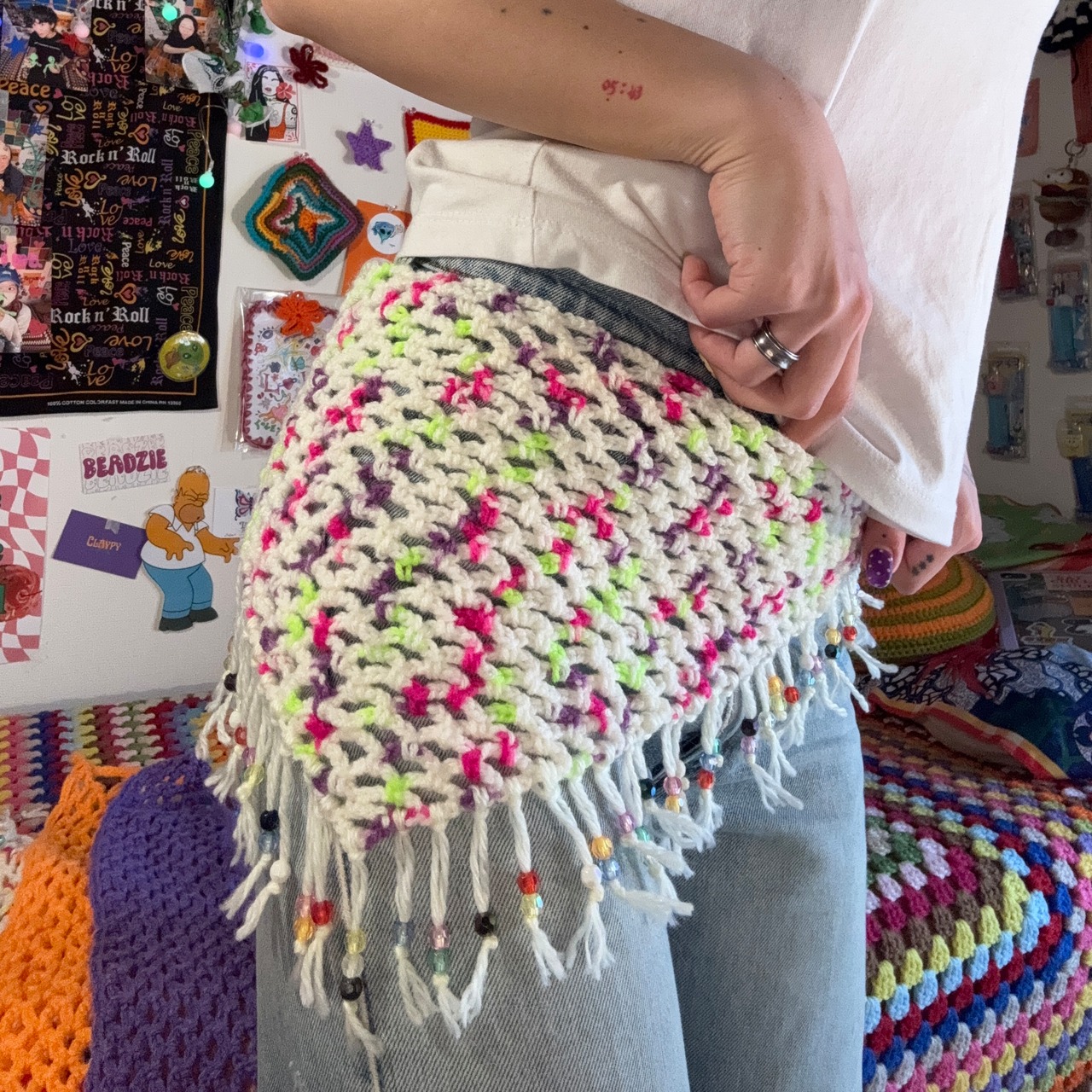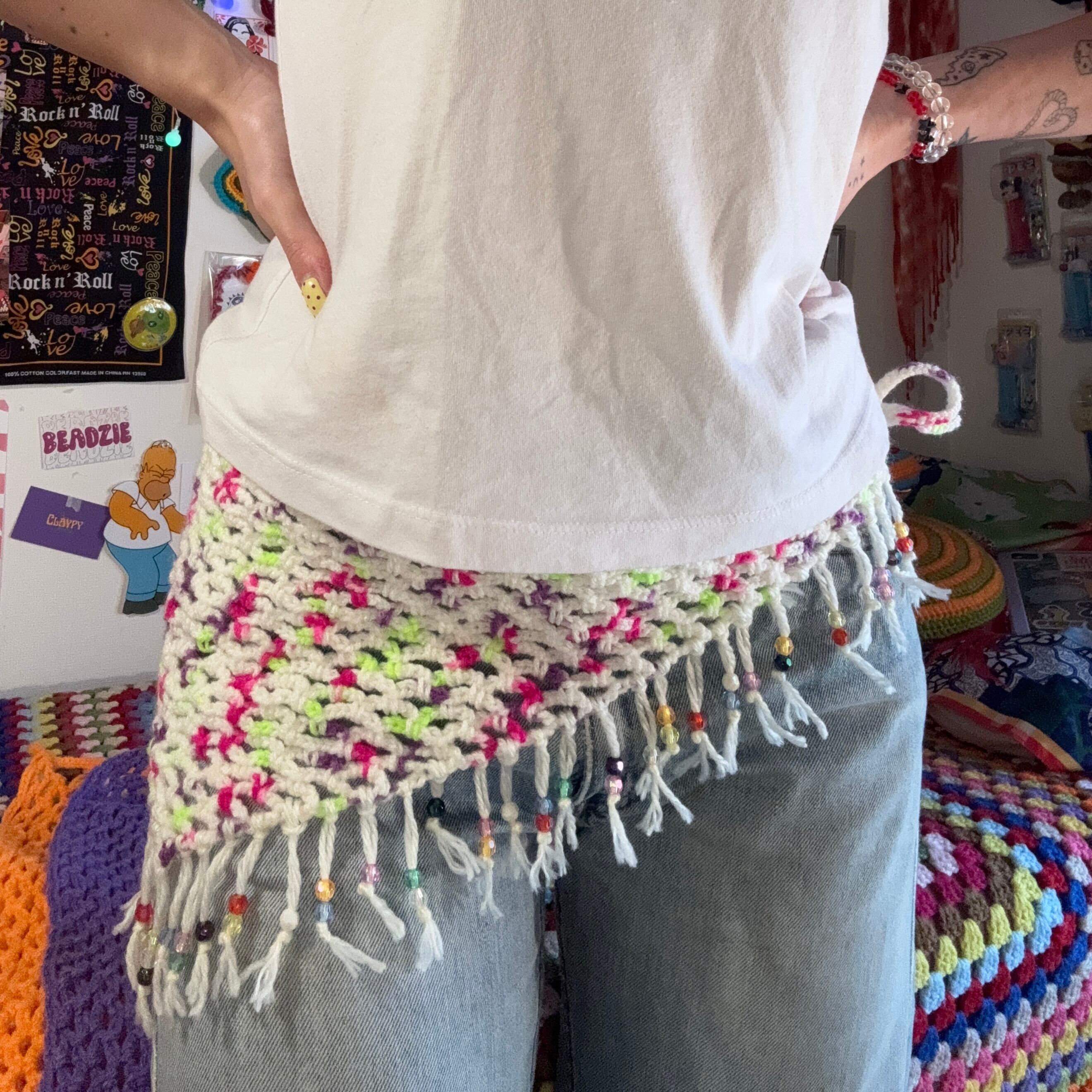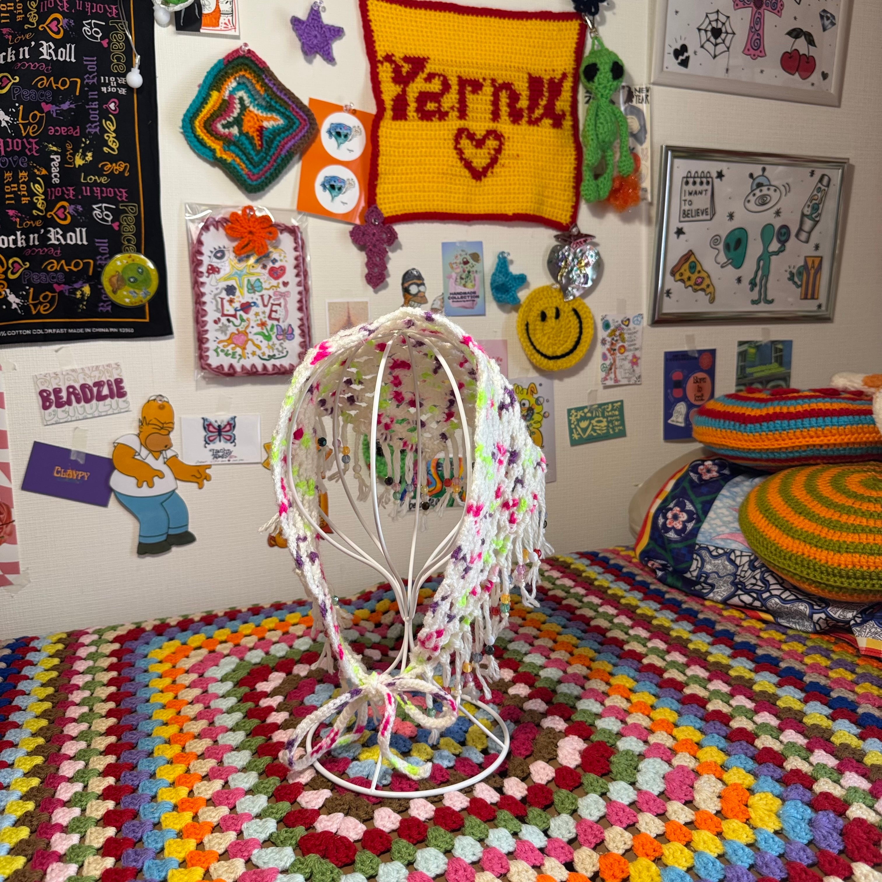 メッシュで編んだWrap Bandannaに"カラフルビーズ"をふんだんに使いました★